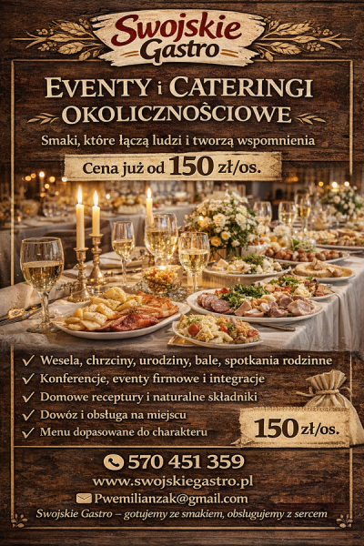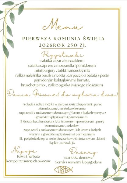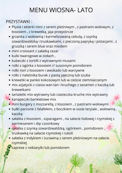Oto nasze propozycje menu, które zostały starannie wyselekcjonowane, aby zaspokoić potrzeby wszystkich klientów. Niezależnie od tego jakie przyjęcie organizujesz – imprezę firmową czy też prywatną uroczystość – mamy wiedzę i doświadczenie, aby stworzyć menu, które trafi w gust każdego z gości. Wszystkie serwowane dania są starannie przygotowane, z dbałością o szczegóły, co gwarantuje zadowolenie zarówno młodszych, jak i starszych osób. Serdecznie zapraszamy do kontaktu i do dokonania rezerwacji na najbliższe organizowane wydarzenie.